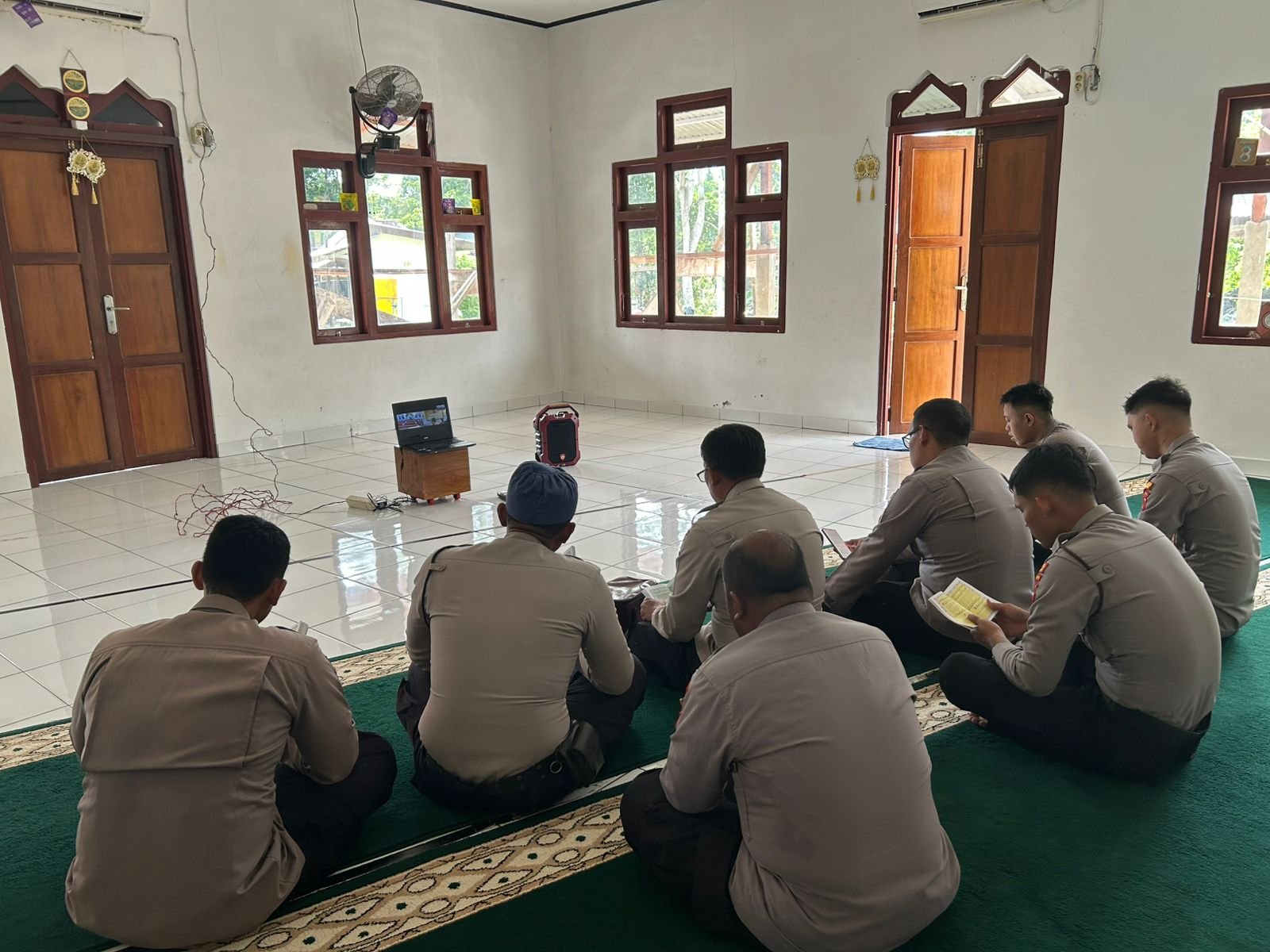Sarmi – Dalam rangka meningkatkan keimanan dan ketakwaan kepada Allah SWT, personel Polres Sarmi yang beragama Islam mengikuti kegiatan Pembinaan Rohani dan Mental (Binrohtal) yang dilaksanakan melalui Zoom Meeting di Masjid Nur Rahmat Polres Sarmi, Kamis (12/2/2026).