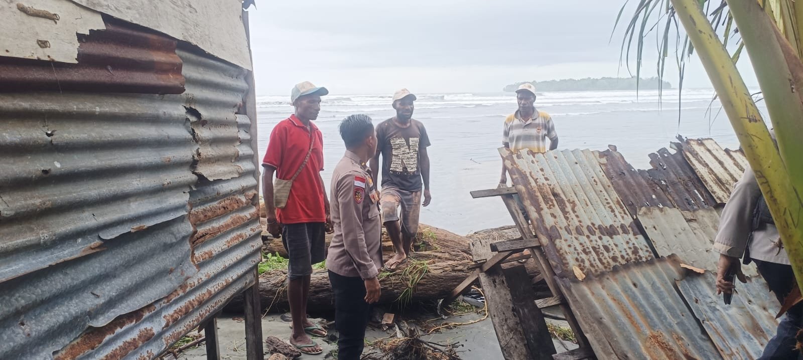 Kasat Polairud Polres Sarmi Tinjau Warga Terdampak Gelombang Tinggi di Pesisir Basecamp