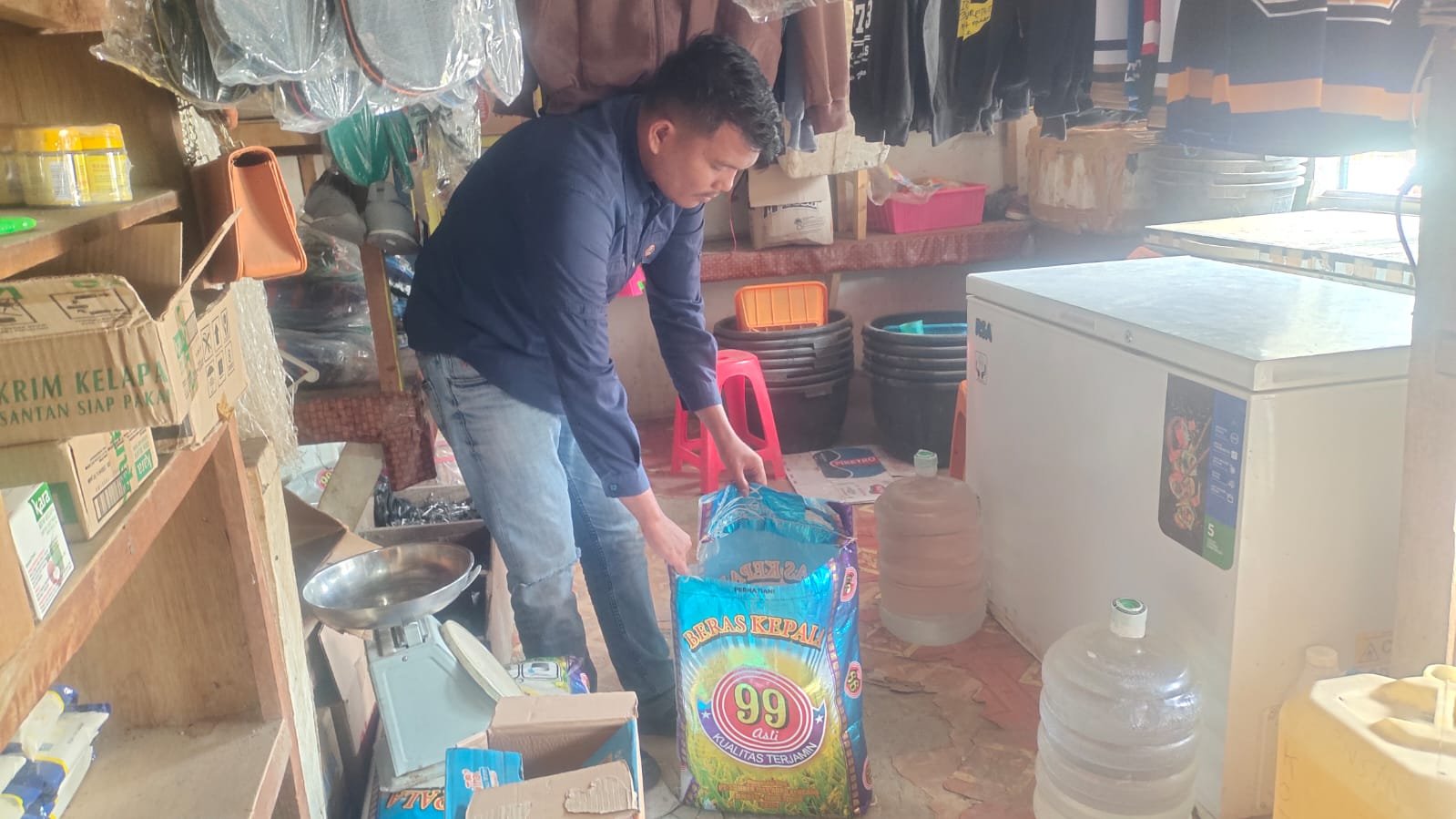 Salah satu lokasi yang menjadi sasaran pengecekan adalah Kios Hj.Edi Jaya milik Hj Edi yang beralamat di Kampung Yokobak . Di lokasi tersebut, petugas melakukan pendataan terkait harga serta ketersediaan beras, baik premium maupun medium.