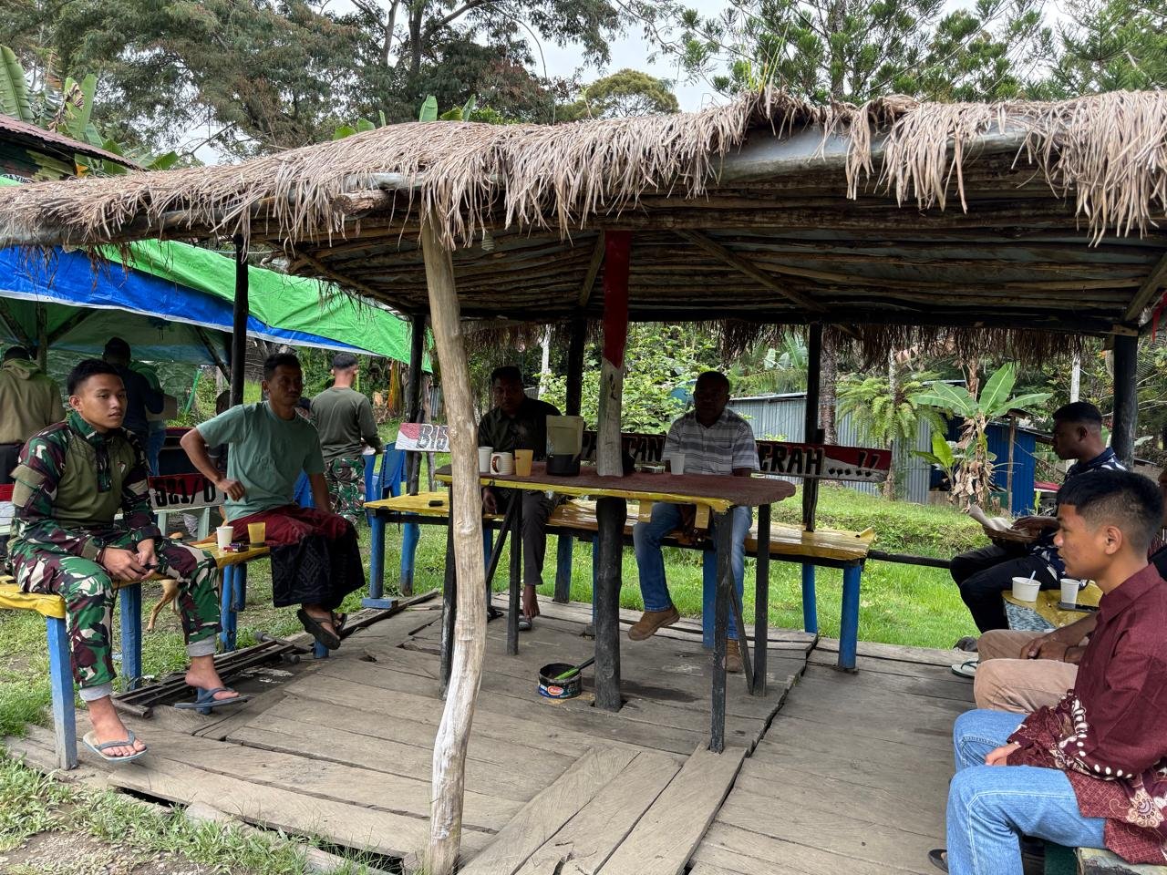 Personel Satgas 521 menyambut hangat kunjungan Kapolsek beserta jajaran, menunjukkan komitmen bersama dalam menjaga stabilitas wilayah Kelila.(rd)